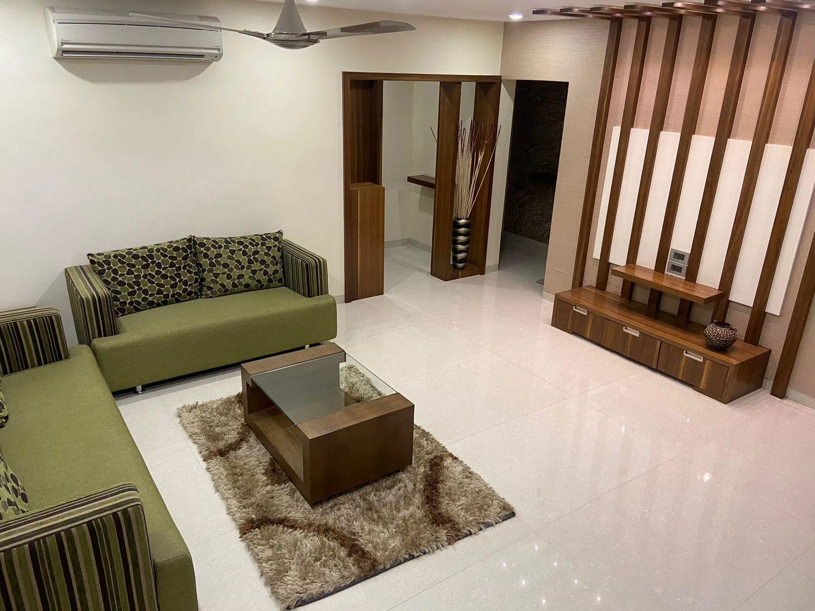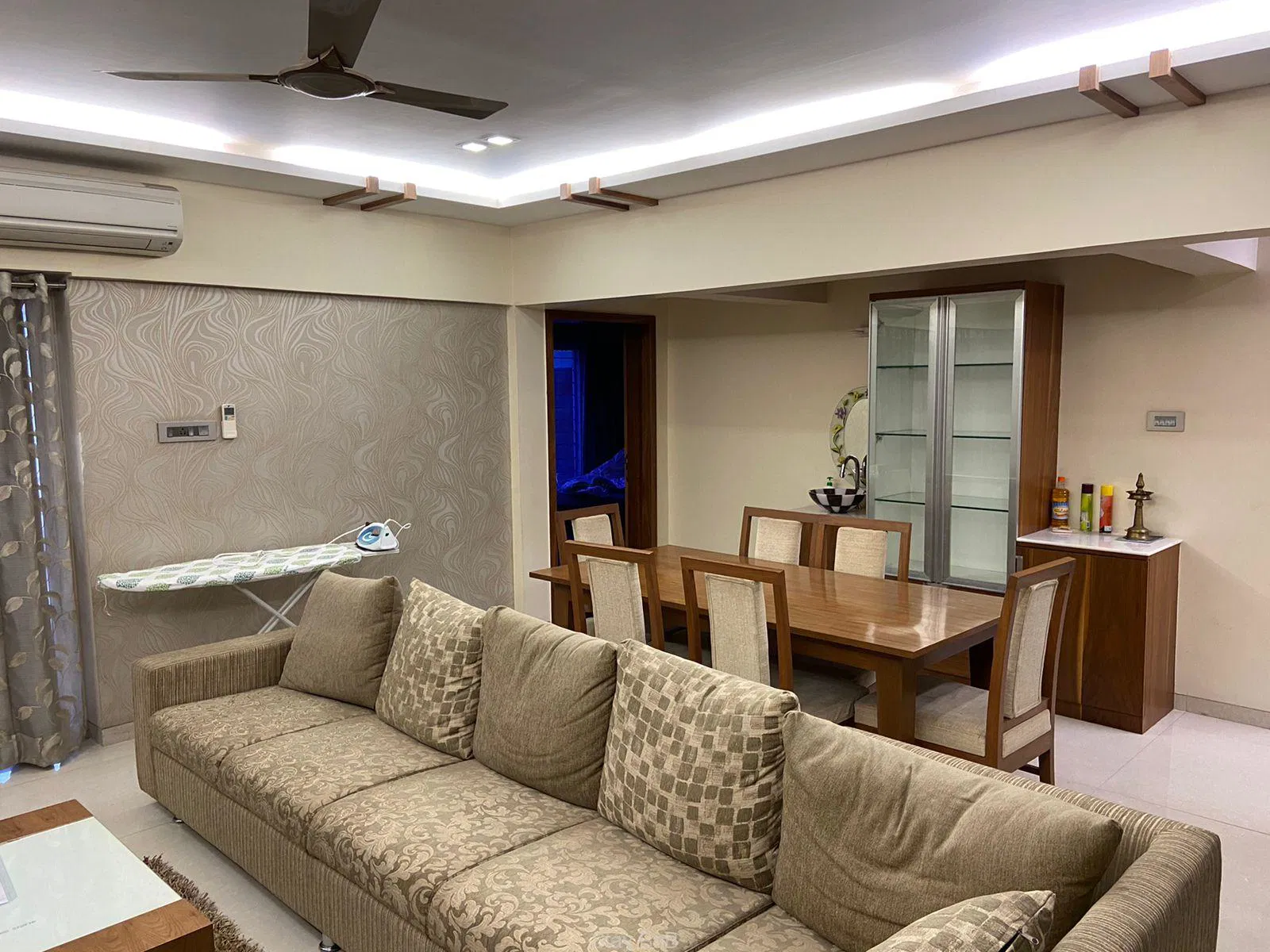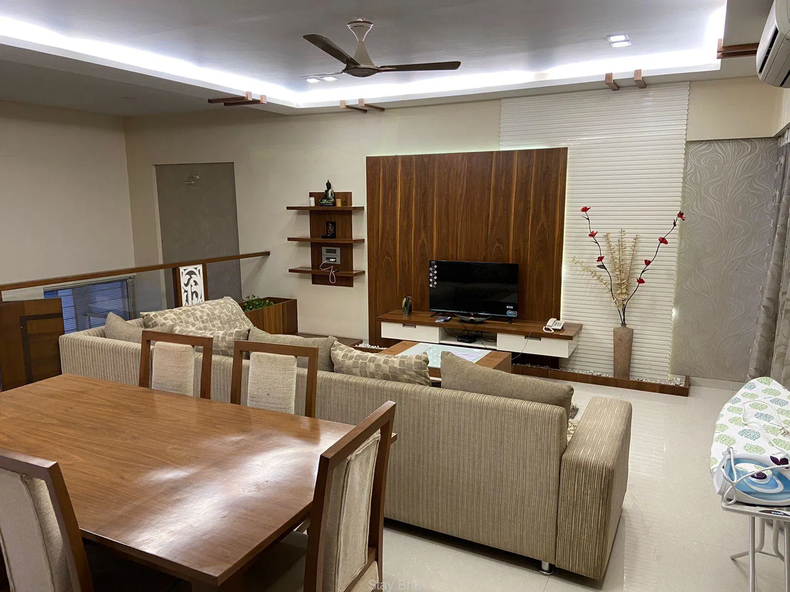 Expansive Living area & Dining Area: living room with plush seating arrangement, smart LED TV, and dining space.